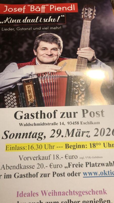 Sonntag 29.3.2026 ab 18 Uhr, Einlass ab 16:30 Uhr: - Josef „Bäff“ Piendl Programm im Braugewölbe: